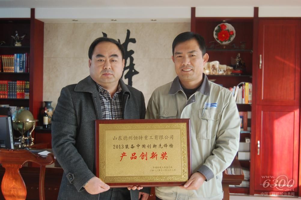 山东德州恒特重工有限公司凭借2013年研发的冲击岩钻、摘果机、移树机等新产品,荣获"2013装备中国创新先锋·产品创新奖"。 恒特重工副总经理王登峰代表企业领取奖牌。