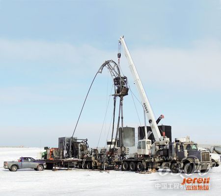 图为由杰瑞制造的中国最大管径连续油管设备在加拿大作业现场
