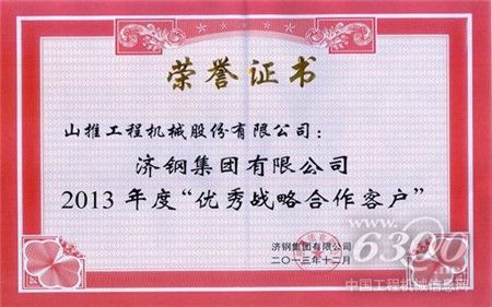 近日,公司荣获济钢集团有限公司2013年度“优秀战略合作客户”荣誉证书。