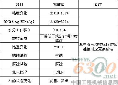 工程机械液压系统油液劣化标准