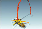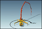 支腿全展开:三一新品泵车全面采用了X型伸缩支腿结构,这种支腿具有结构更简单,维修更方便,良好受力,单侧支撑等主要优点。伸缩型支腿相对摆动型有较大的优势,如作业场地小、结构重量轻。
