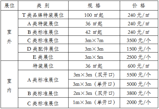2、室外T类展位必须在144平方米以上并且进行特装搭建,否则组委会不予预留。特装搭建可以联系组委会指定搭建商。(特装搭建由搭建商统一提供桌椅、组委会不予提供)。