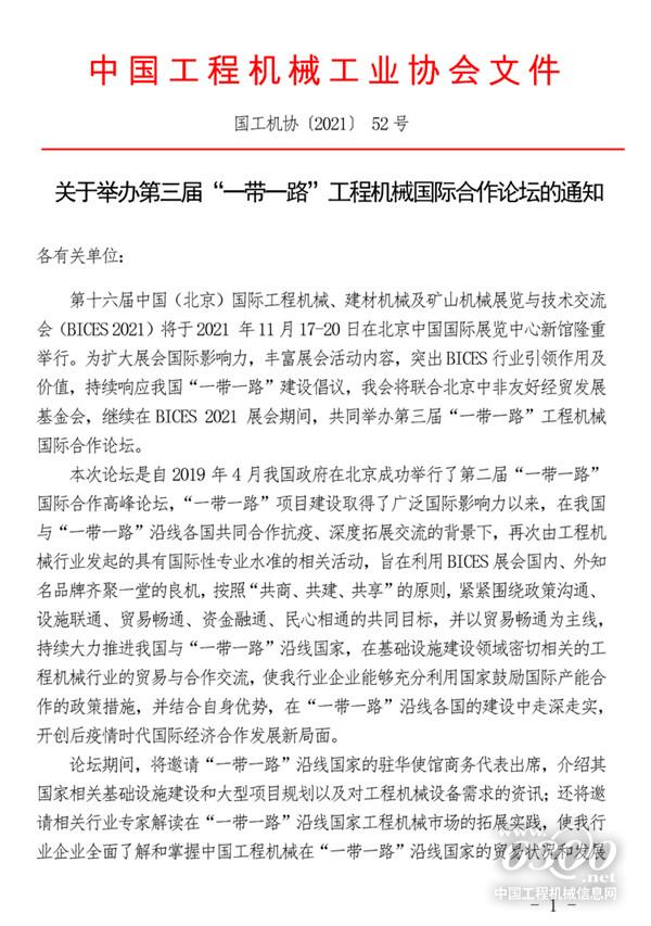 关于举办第三届“一带一路”工程机械国际合作论坛的通知