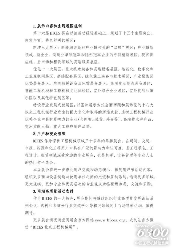 更多展会情况请查阅展会官方网站www.e-bices.org,或关注官方微信“BICES北京工程机械展”。