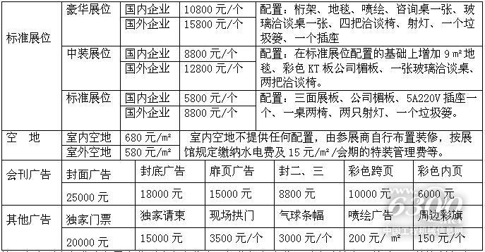 》》》【参展费用】