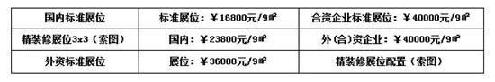 注 明:1、参展企业若选择双开口展位加20%展位费用。