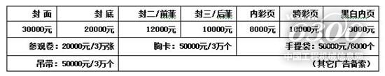 参观卷:20000元/3万张胸卡:50000元/3万个手提袋:50000元/6000个