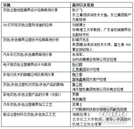 同期活动向来是Asiamold的主要亮点之一。除了于首日举办的华南塑胶模具与模具钢材高峰论坛外,展会期间还有不少精彩活动。由双色模具注塑联盟举办的双色/多色模具注塑技术高端峰会将于展会第二天举行,该峰会将重点分析双色/多色模具注塑技术在汽车车灯、家电、电子制造、智能穿戴等行业的应用,精英讲师与模具品牌大咖携手打造,全面展示双色/多色注塑模具工艺与技术难点。部分精彩议题抢先看: